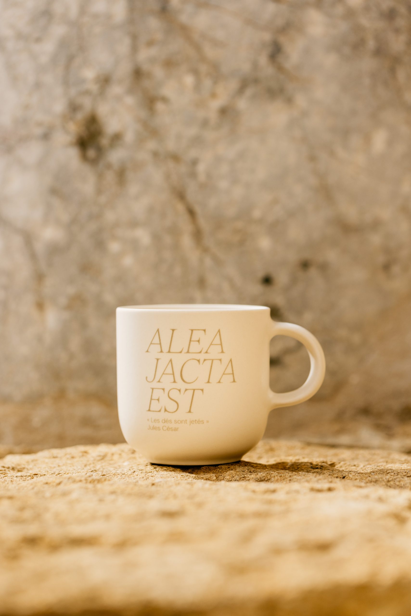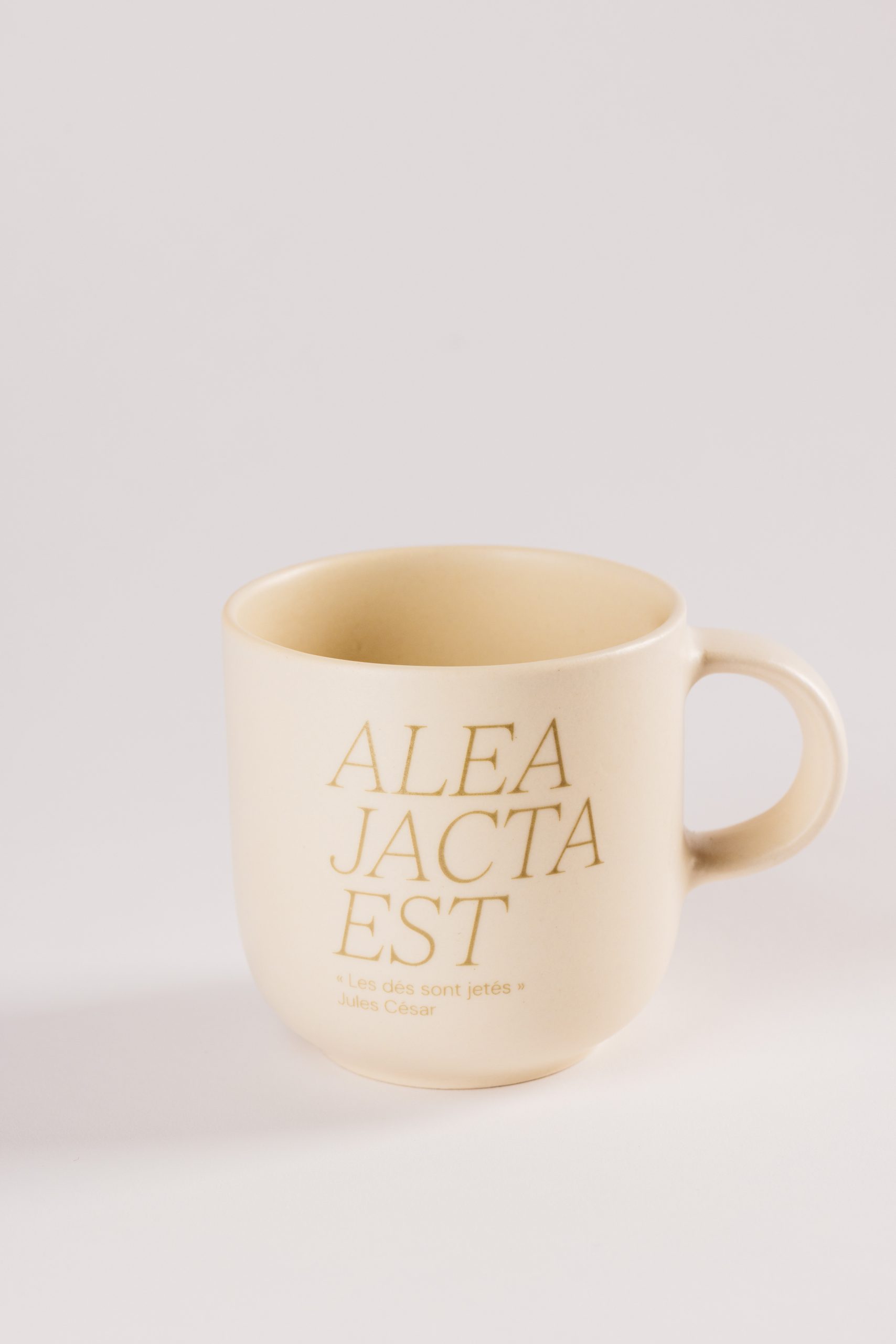 Mug blanc avec inscription, 9cm de diamètre et 9cm de haut.